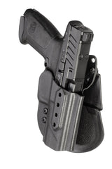 The Extraction Series was designed and manufactured to meet the growing demand for CCW appendix style and is completely customizable for optimum form and function. The Extraction Series is a passive retention IWB/OWB holster. The Extraction holster includes a belt clip for IWB carry option and a paddle for OWB carry option. Compatible with all standard optics such Crimson Trace, Vortex, Trijicon, Holosun, Sig Sauer etc.